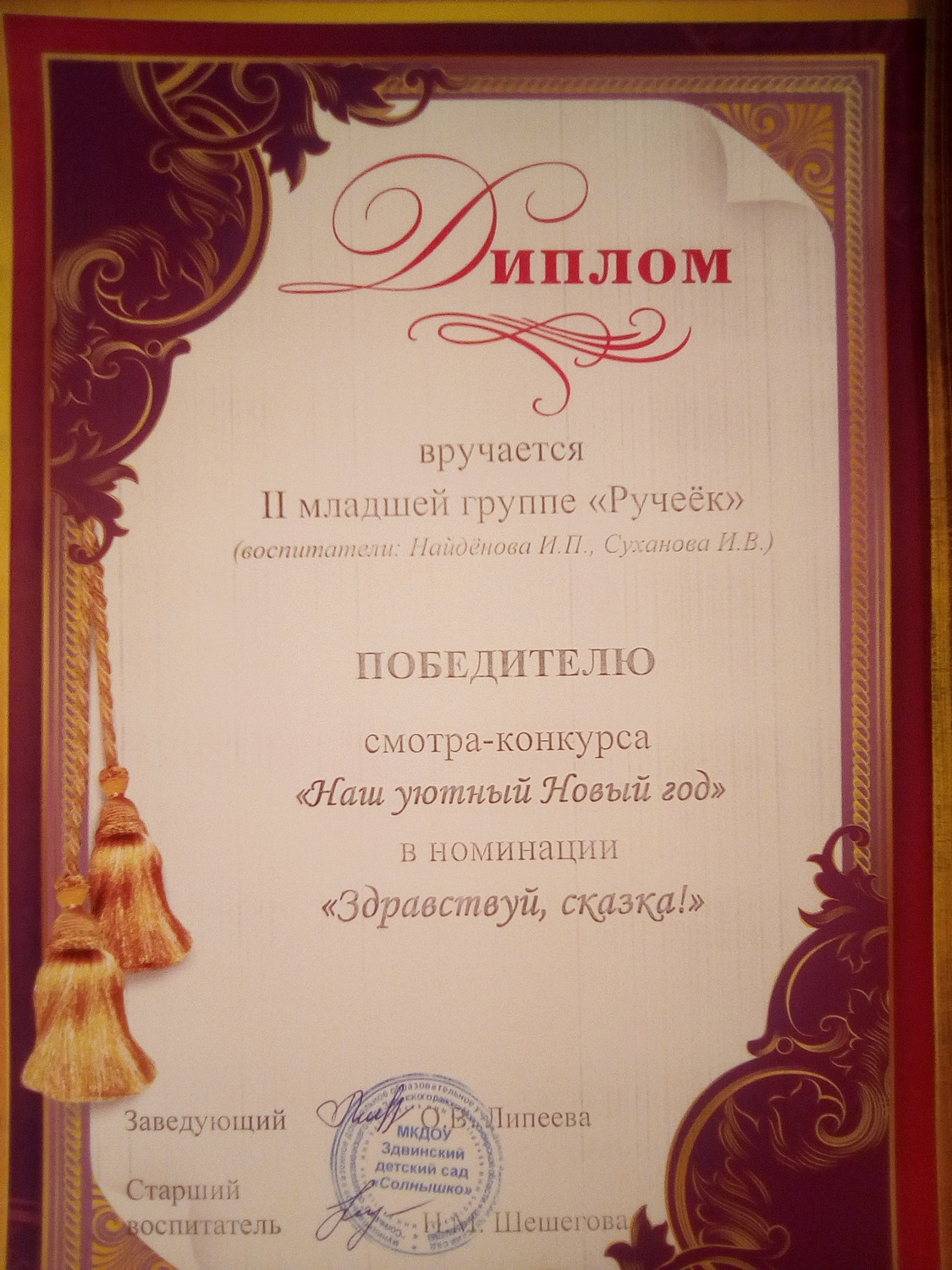 МКДОУ Здвинский детский сад "Солнышко" | Смотр-конкурс "Наш уютный Новый год", Диплом победителя, 2019г |