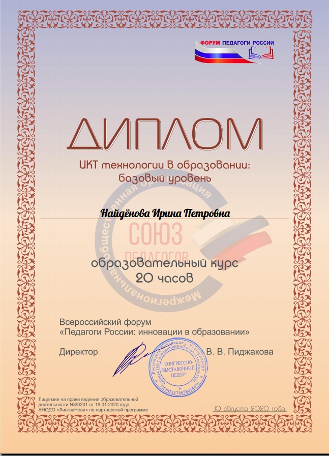 «ИКТ технологии в образовании: базовый уровень», Диплом |