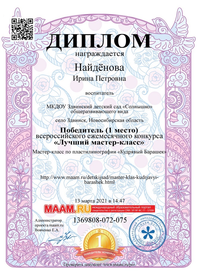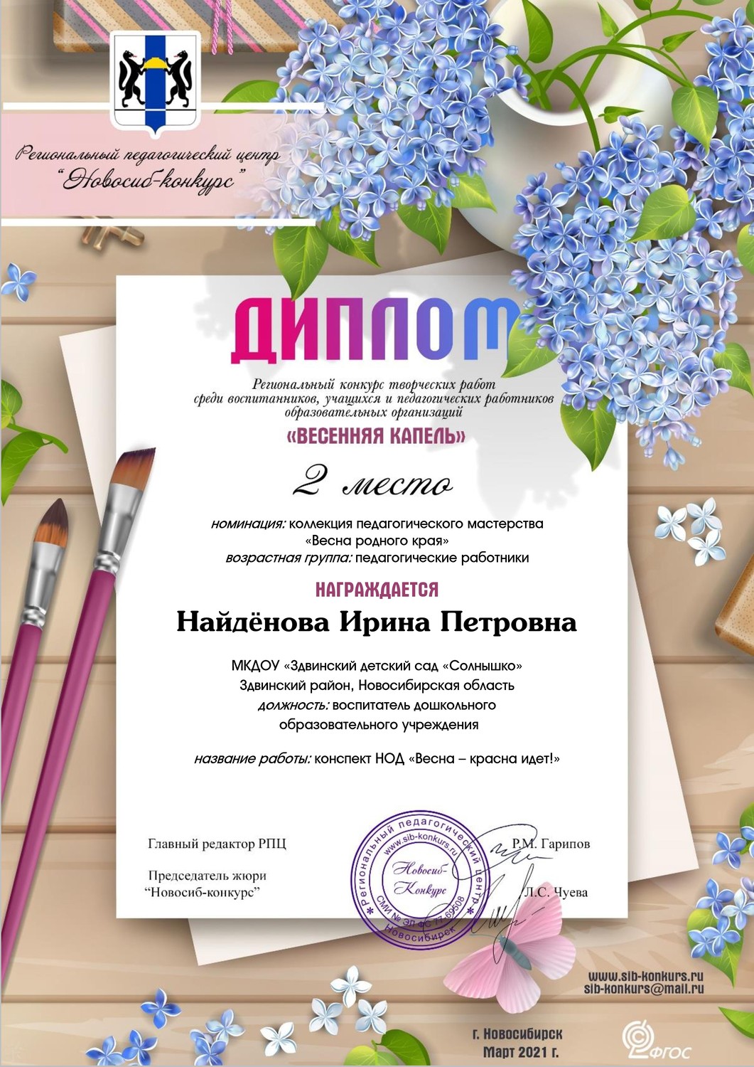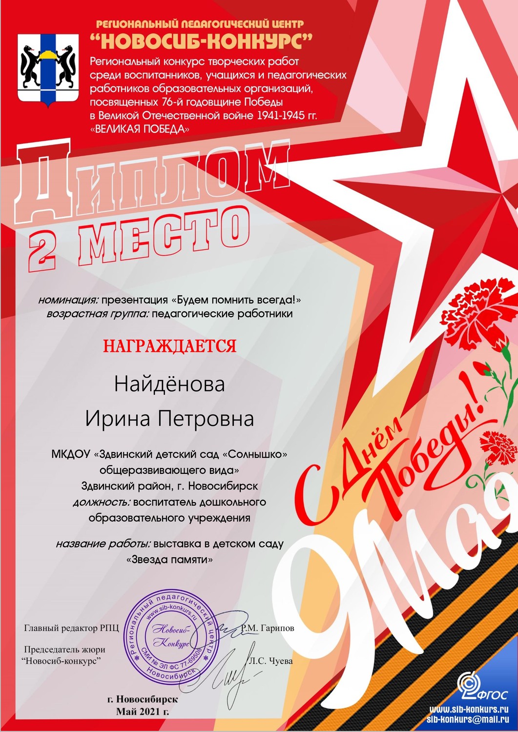 Региональный педагогический центр «Новосиб- конкурс», Новосибирск, май 2021г |