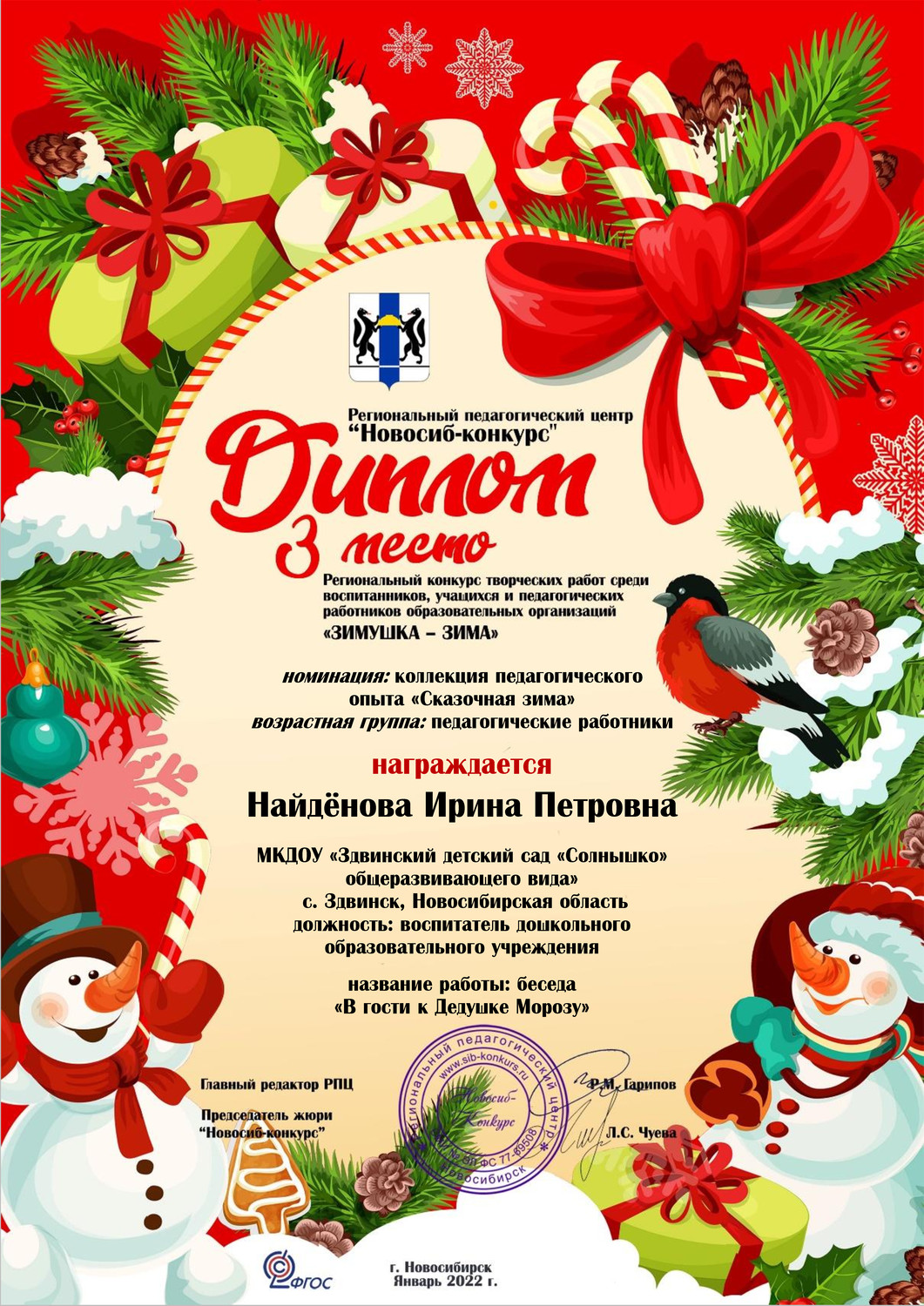 Региональный педагогический центр «Новосиб- конкурс», январь 2022г |