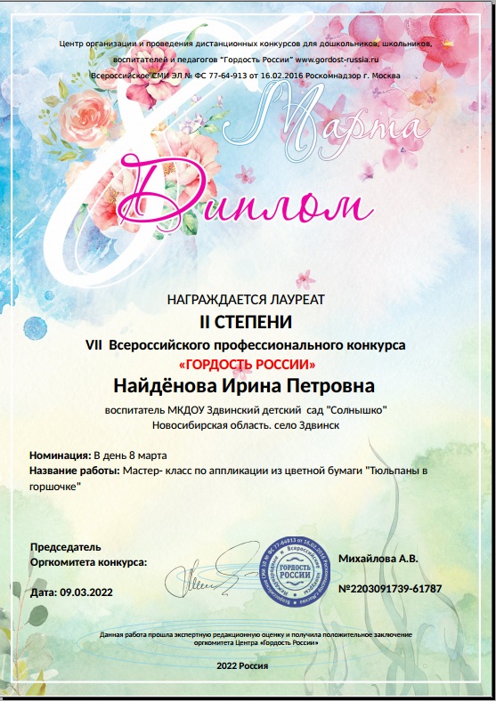 VII Всероссийский профессиональный конкурс «Гордость России», март 2022г |