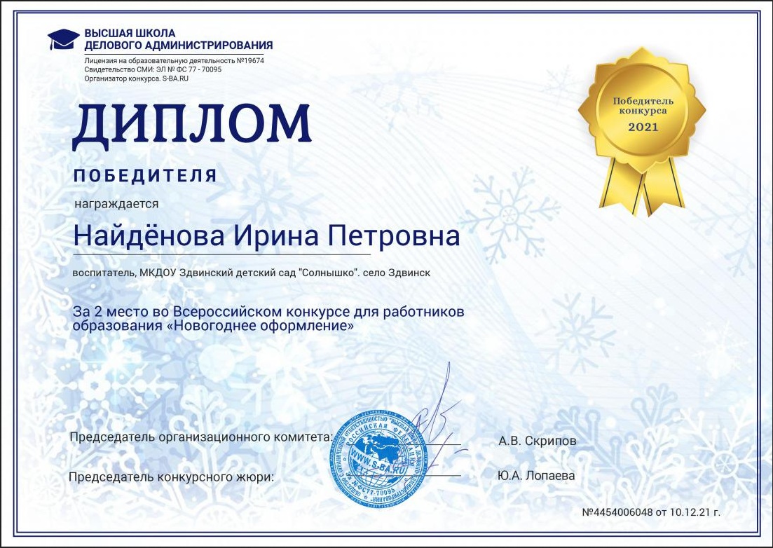 Всероссийский конкурс «Новогоднее оформление», диплом победителя |