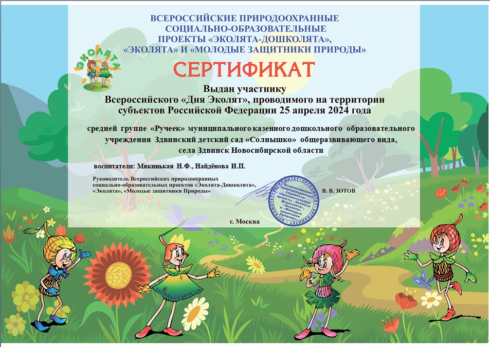 Всероссийский природоохранный социально-образовательный проект "Эколята-дошколята", Сертификат участника Всероссийского "Дня Эколят", апрель 2024г |