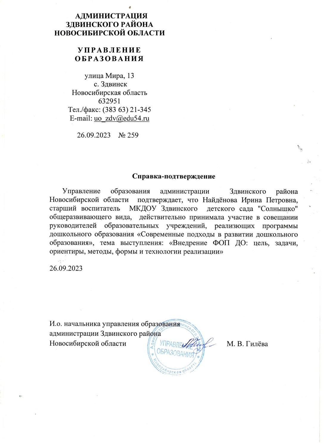Управление образования администрации Здвинского района "Внедрение ФОП ДО: цель, задачи, ориентиры, методы, формы и технологии реализации" |
