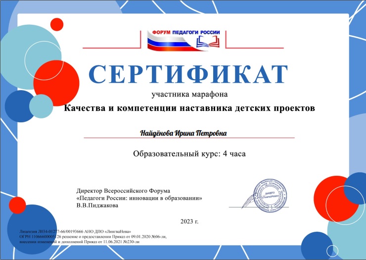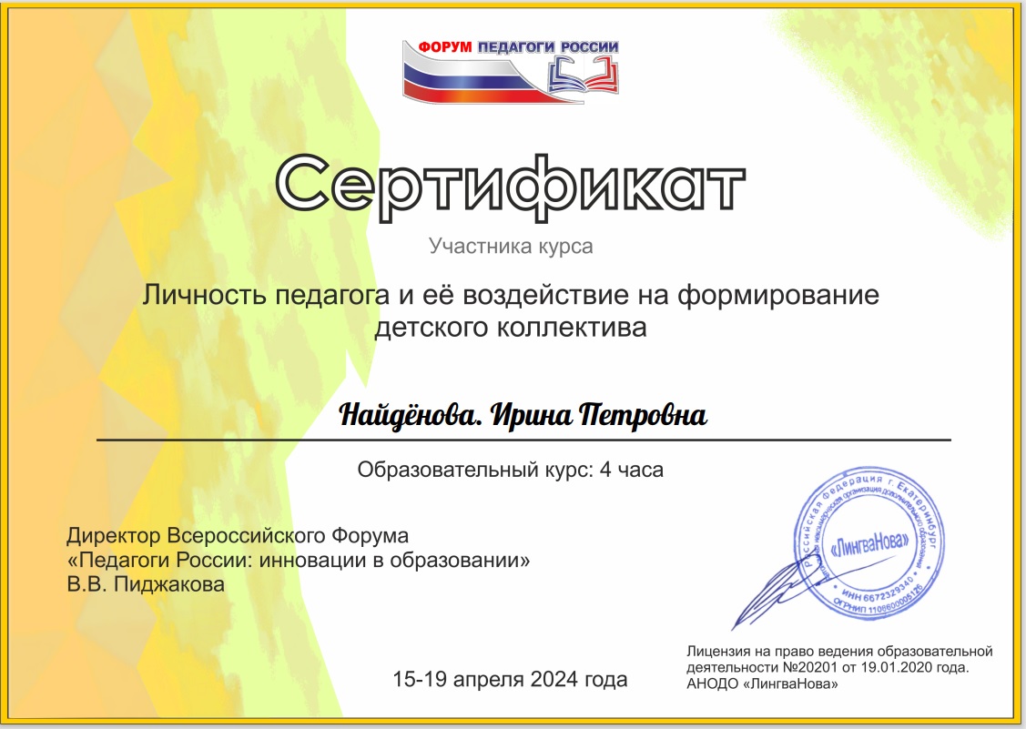 Всероссийский форум "Педагоги России: инновации в образовании" Личность педагога и ее воздействие на формирование детского коллектива, апрель 2024г |