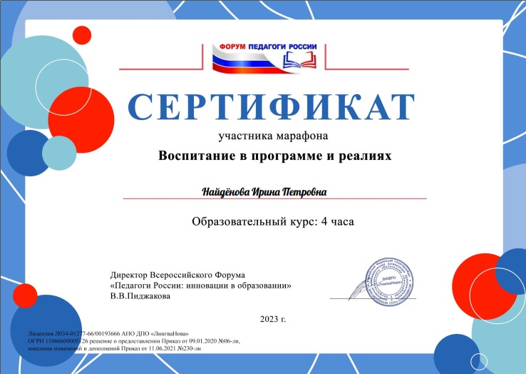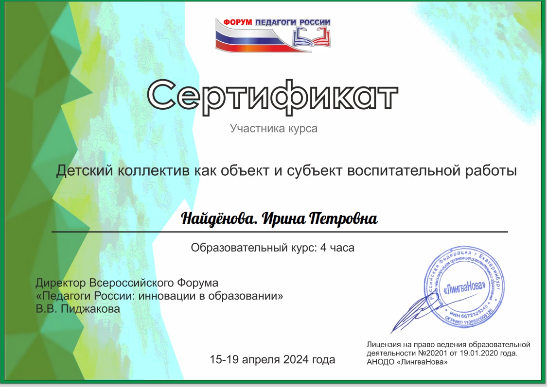 Всероссийский форум "Педагоги России: инновации в образовании" Детский коллектив как объект и субъект воспитательной работы, апрель 2024г |