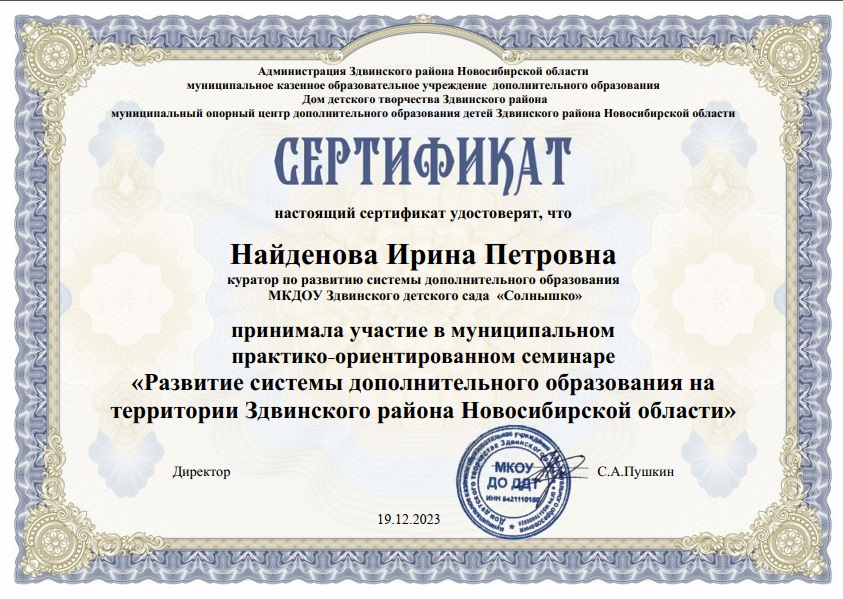 муниципальный практико-ориентированный семинар "Развитие системы дополнительного образования на территории Здвинского района Новосибирской области" |