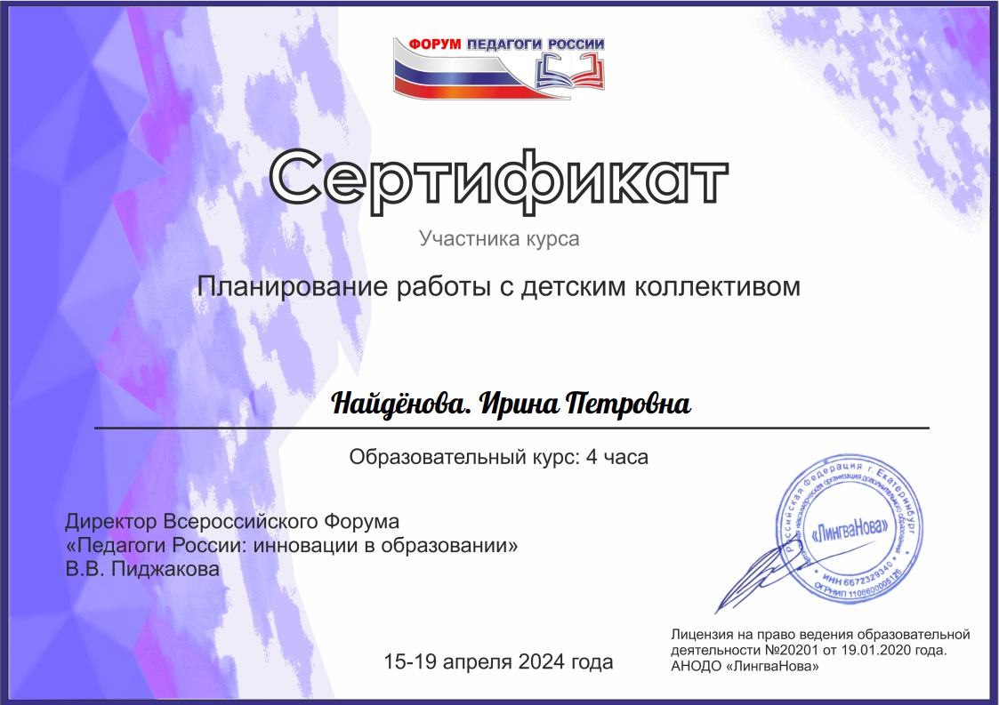 Всероссийский форум "Педагоги России: инновации в образовании" Планирование работы с детским коллективом, апрель 2024г |