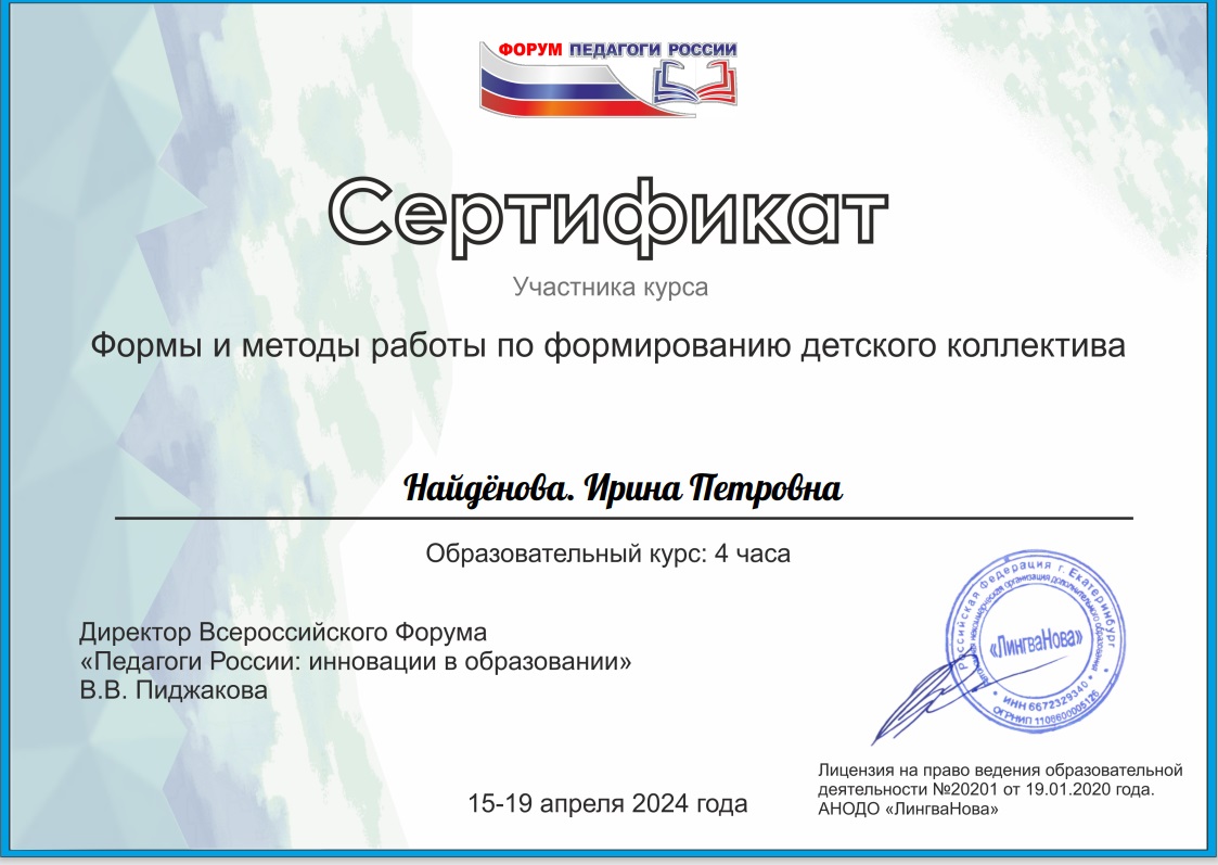 Всероссийский форум "Педагоги России: инновации в образовании" Формы и методы работы по формированию детского коллектива, апрель 2024г |