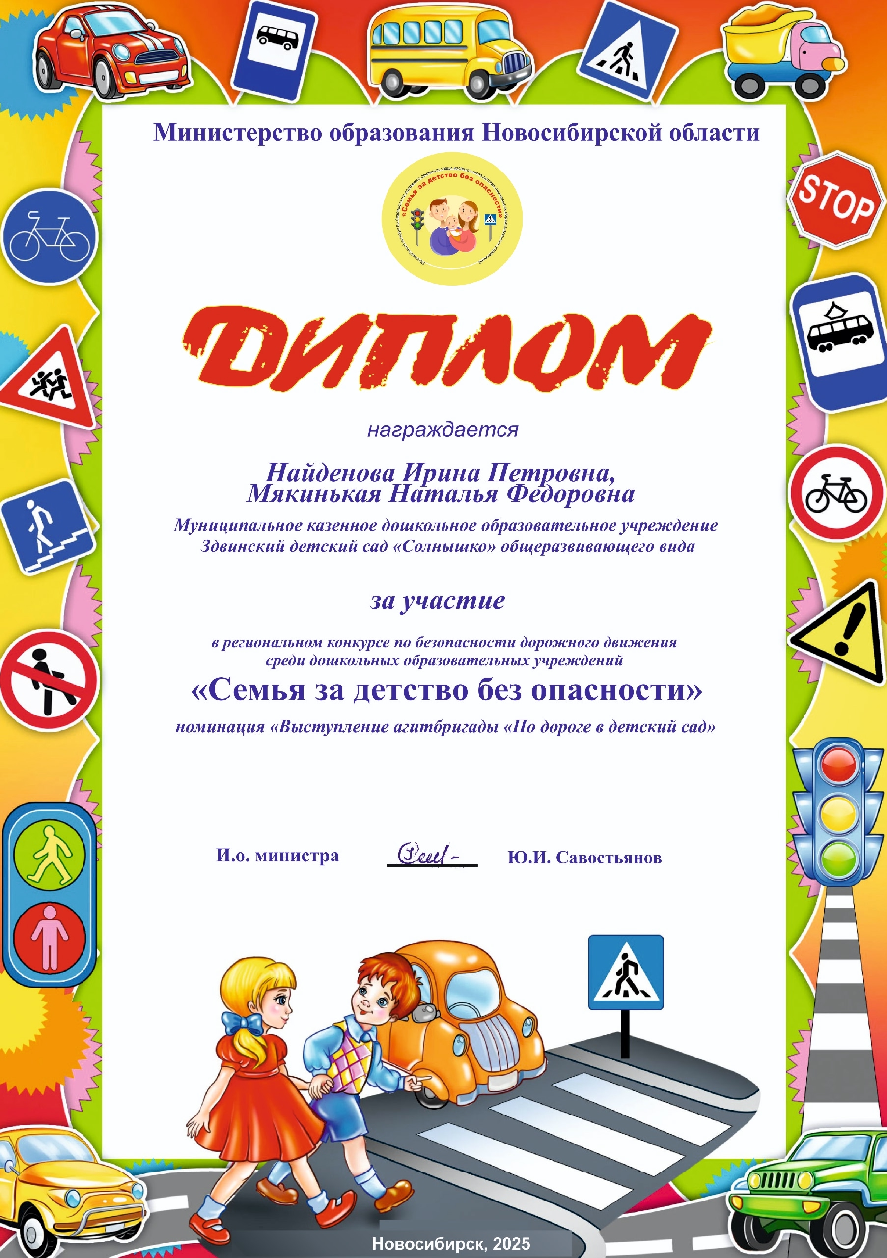 Региональный конкурс по безопасности дорожного движения среди дошкольных образовательных учреждений "Семья за детство без опасности", Министерство образования Новосибирской области, Диплом участника, Новосибирск, 2025 | ![]() |