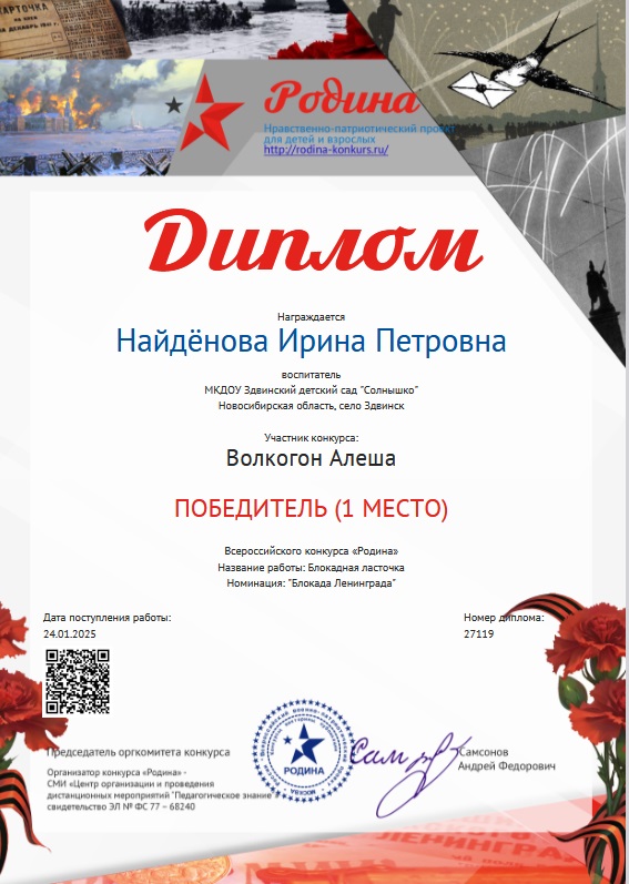 Региональный Образовательный Центр «Новосиб-конкурс»,«ГЕРОИ ОТЕЧЕСТВА», Диплом 2 место, февраль 2025г | ![]() |