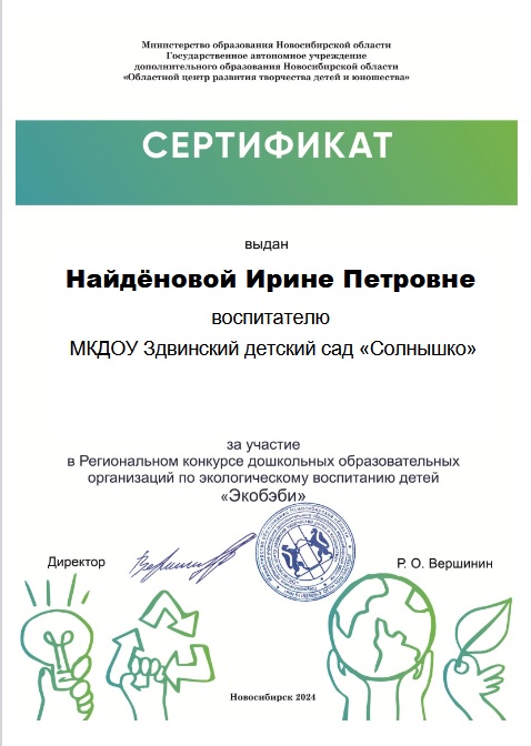 Региональный конкурс по экологическому воспитанию детей «Экобэби-2024» ГАУ ДО НСО "Областной центр развития творчества детей и юношества", Новосибирск, 2024г |