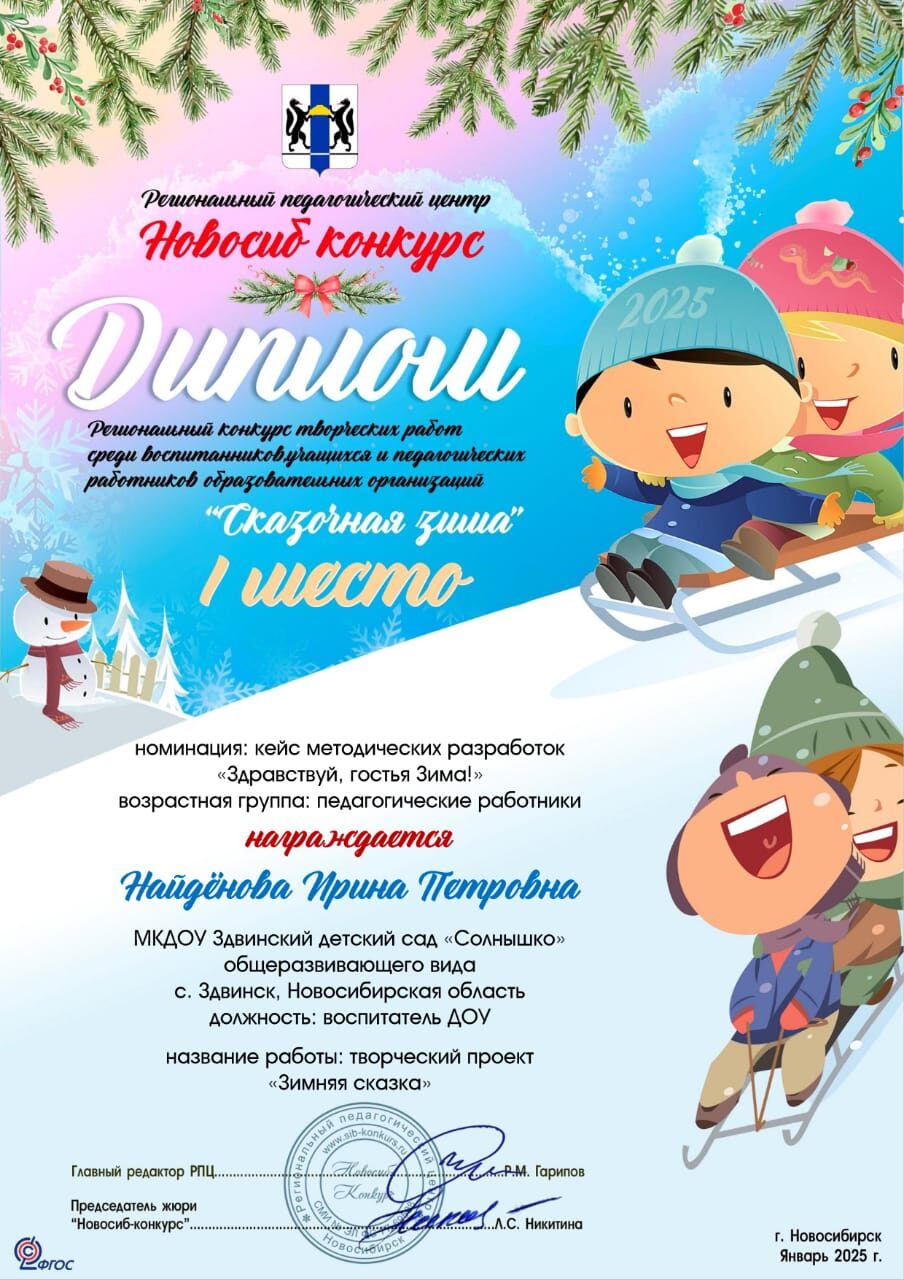 Региональный Образовательный Центр «Новосиб-конкурс», «Сказочная зима», Диплом 1 место, январь 2025г | ![]() |