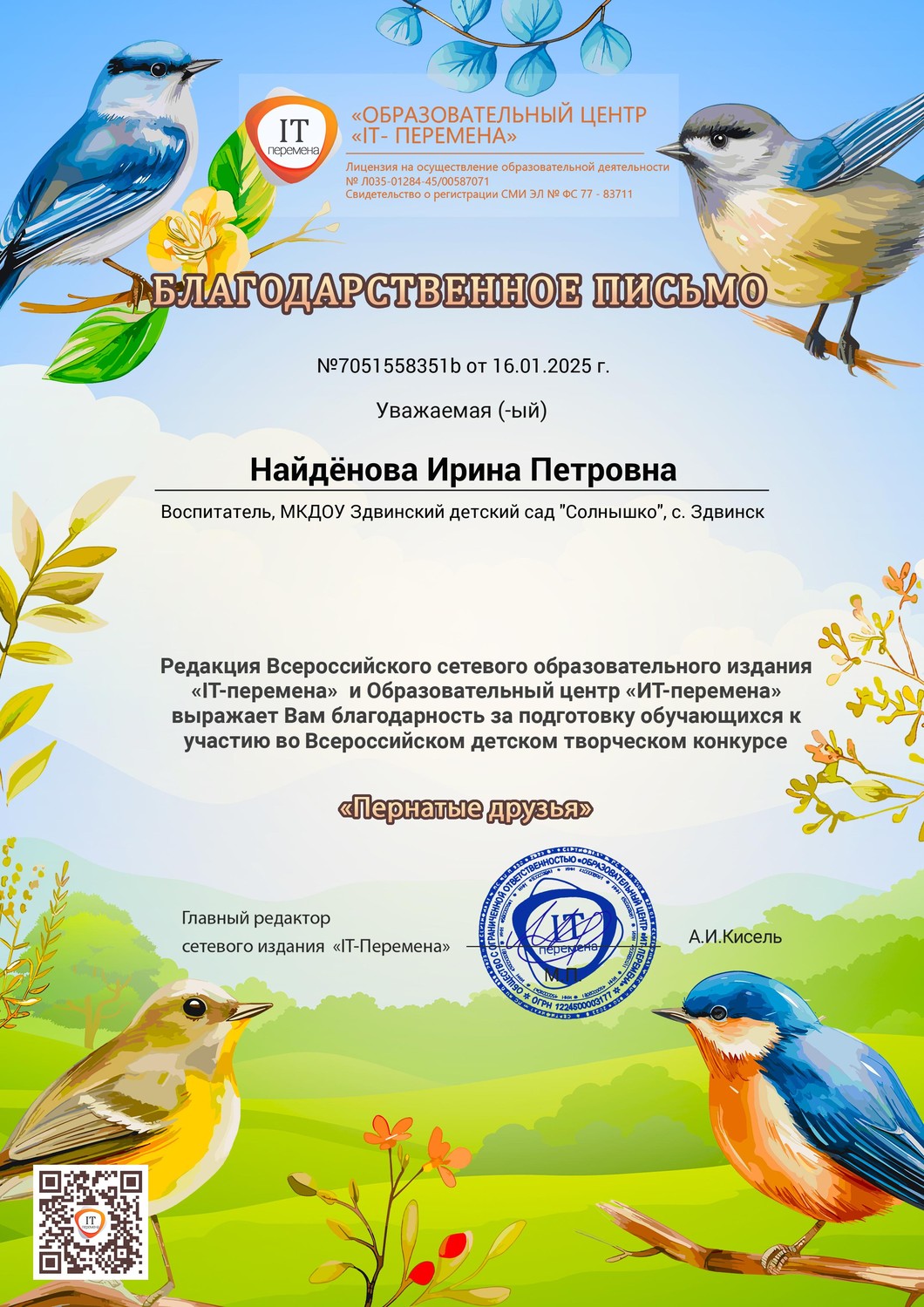 Образовательный центр «IT-Перемена» Всероссийский творческий конкурс «Пернатые друзья», январь 2025г |