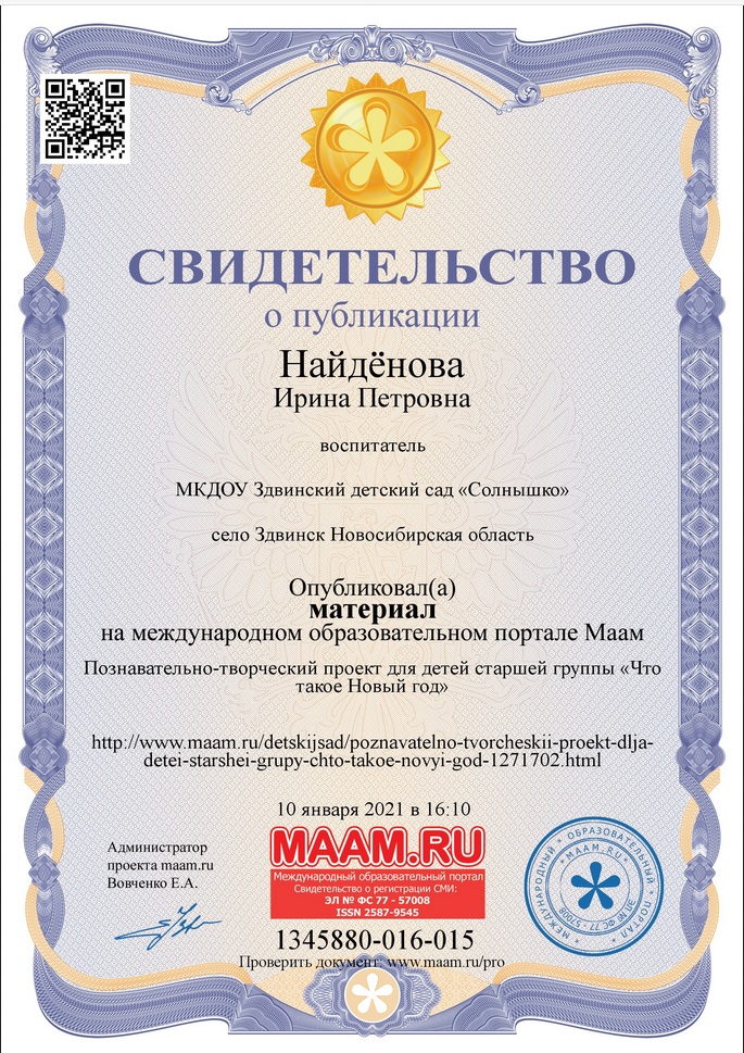 Познавательно- творческий проект для детей старшей группы «Что такое Новый год», январь 2021г |