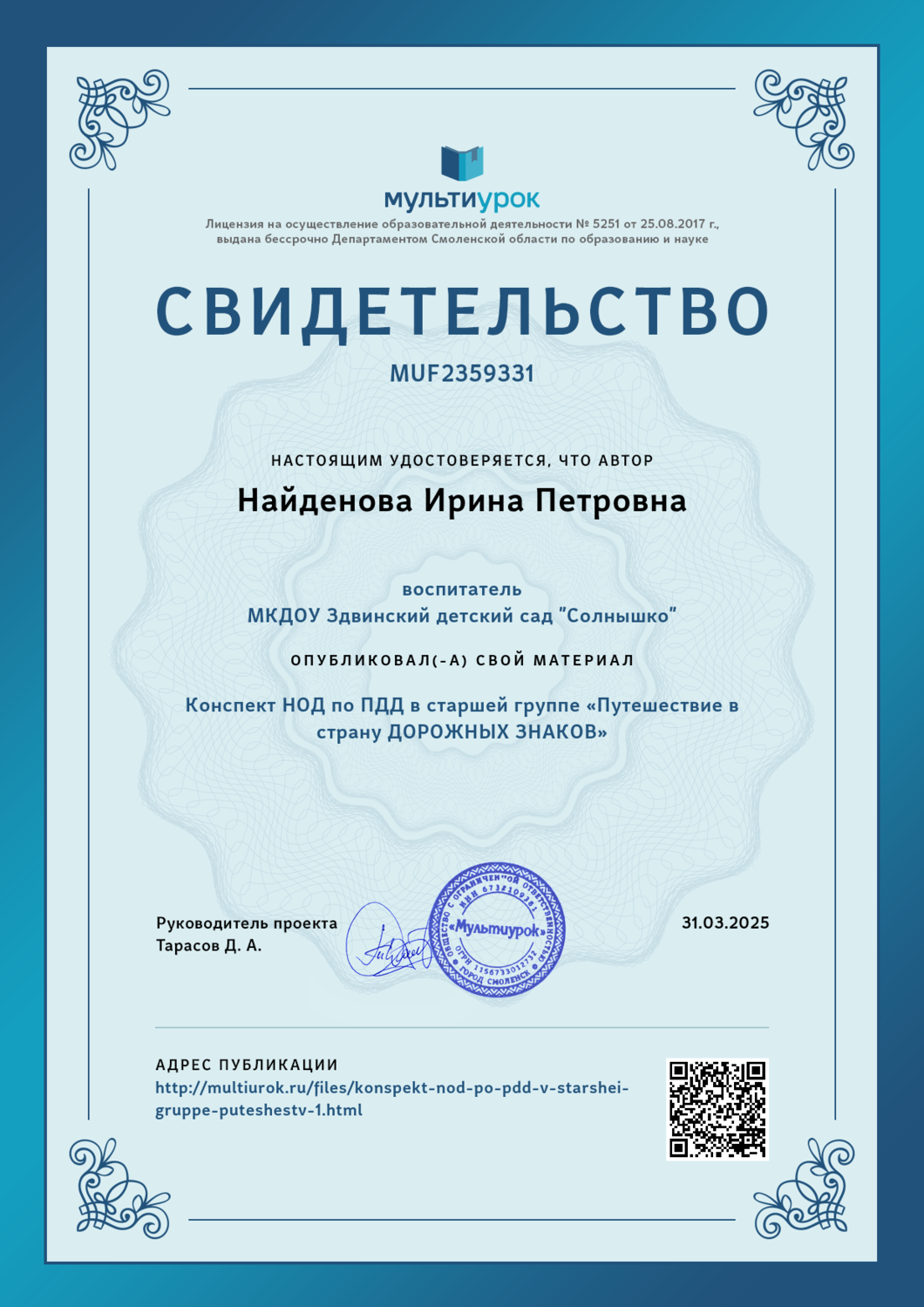 Конспект НОД по ПДД в старшей группе «Путешествие в страну ДОРОЖНЫХ ЗНАКОВ»
